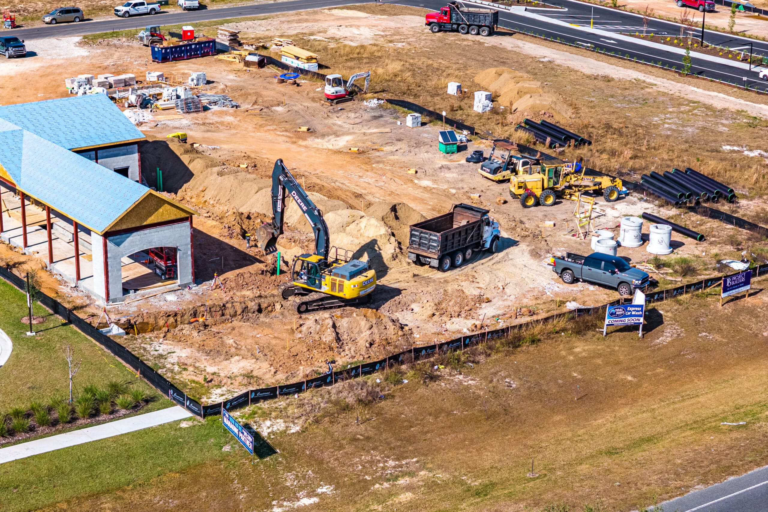 Florida Construction Drone Services recently provided aerial progress documentation for the new Whistle Express Car Wash project in Live Oak, Florida. This development is positioned along Ohio Ave N, the primary route that links Interstate I-10 directly into the center of Live Oak. The corridor carries a steady stream of regional and interstate traffic, making it an ideal location for future commercial growth.