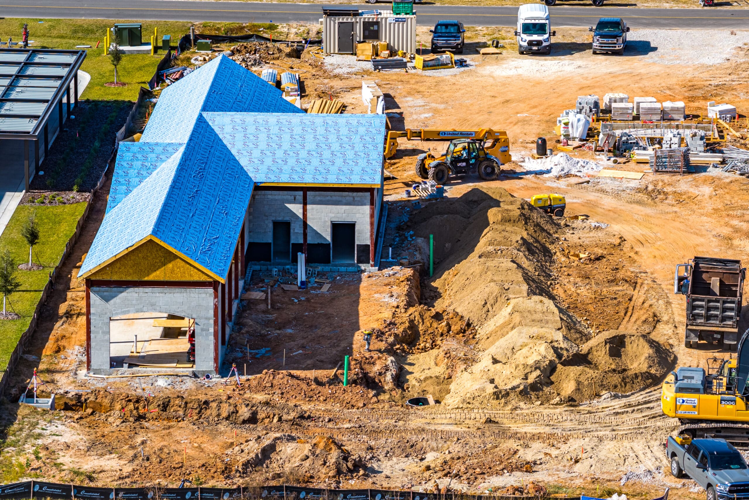 Using our advanced DJI Mavic 4 Pro, we captured an up-to-date visual record of the construction activity—including site grading, building footprint formation, staging areas, and the project’s relationship to nearby businesses such as Chick-fil-A. Our drone flights provide consistent, high-angle perspectives that help construction teams stay informed without needing to physically visit the site.